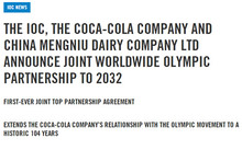 蒙牛与可口可乐签署30亿美元奥林匹克赞助协议,北京冬奥组委发声称将维护赞助企业合法权益